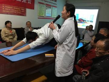 首先,由我院康复医学科医师常阳为青羊区残疾人进行理论的培训指导,开展了以“腰痛的预防保健康复” 为主题的健康讲座。在课堂上,常阳与学员们频频互动、探讨各种健康问题,使得课堂气氛十分活跃。理论培训之后,常阳又结合实际案例介绍了腰痛的症状以及如何治疗,理论与实际相结合的教学方式,受到了现场学员们的肯定。最后由康复医学科治疗师李剑寒针对日常生活中的坐姿、站姿、睡姿等看似简单的动作进行了教学,让大家在日常生活中也能养成良好的生活习惯,避免由于不当的站姿、错误的坐姿、不合理的睡姿等造成不必要的伤痛。