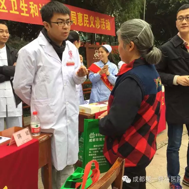 其次,医院病区大主任黄建副主任医师、创伤骨科医生蒋斌等骨科专家也在现场坐诊,为大家免费诊断骨科疾病、用现场手法与敷药治疗等,而志愿者们也积极为现场的朋友测量血压、普及骨科疾病小知识、发放健康教育知识手册等。