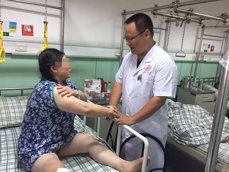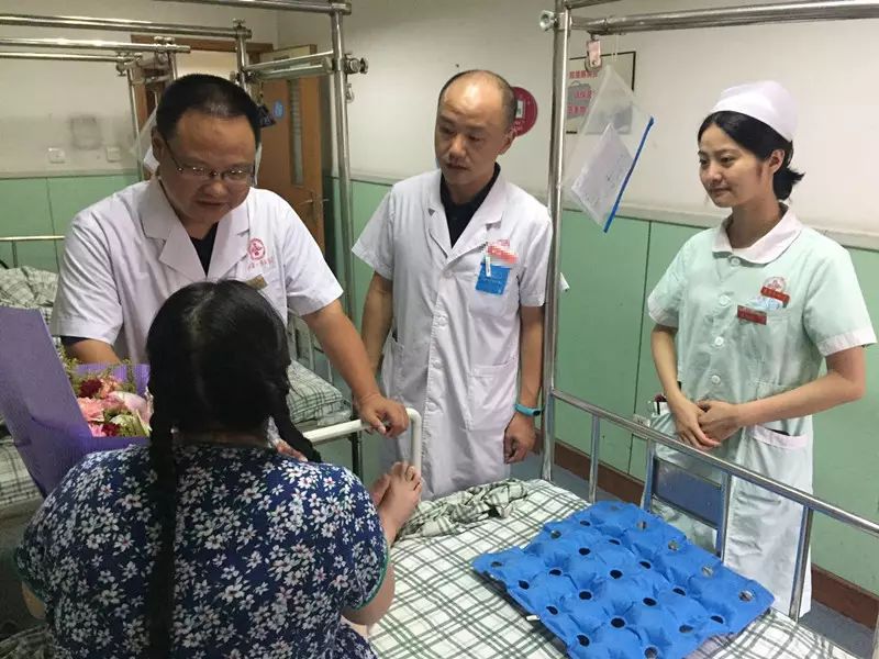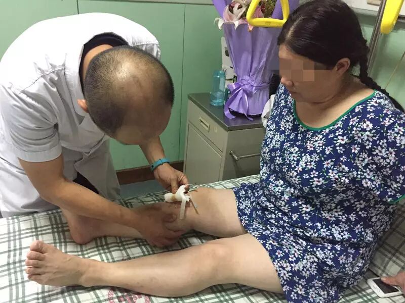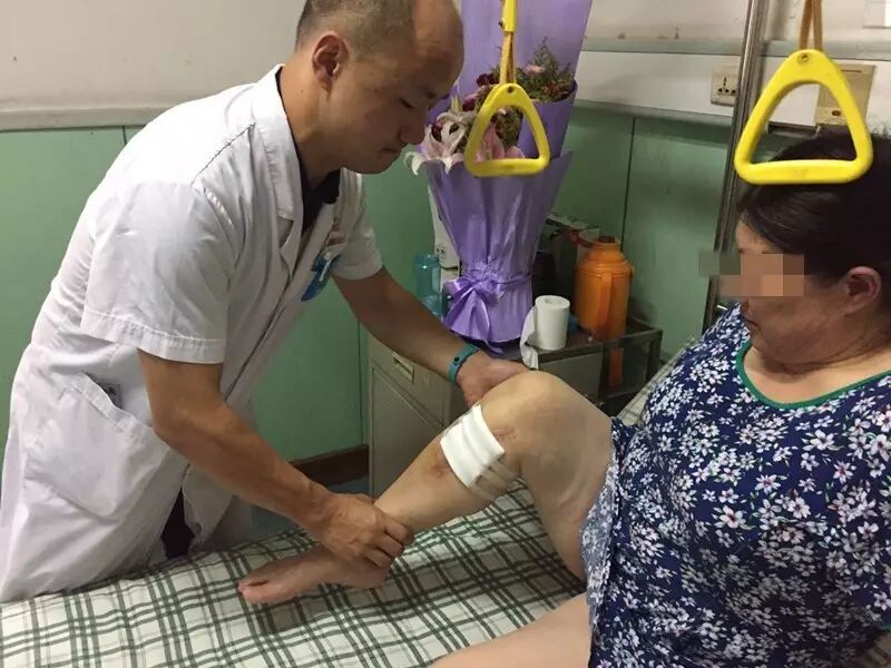 我来自新疆,来找你们医院高巍医生。2017年6月的某天,成都第一骨科医院急诊科来了一位中年妇女,一进门就这样说道。 原来这位妇女叫卢明香,她的老公在19年前因车祸致右侧肱骨外科颈开放性骨折,在当地医院建议截肢,后来转来成都找到我院高巍医生,成功进行手术后其老公右上肢功能恢复相当好,生活没有任何影响。她和丈夫长年在新疆打工,这次她右膝关节疼痛,在新疆当地医院诊治,保守治疗没有效果,当地医生建议她换膝关节。 “换膝关节不但费用高昂,而且我还这么年轻,换了膝关节还怎么干活养家。”卢明香一听到这个消息,就懵了。“那我们要不回成都找一找当年给我做手术的高巍医生。”丈夫的一句话提醒了她。“对呀,找当年的恩人高巍医生”,夫妻俩第二天就乘飞机从新疆赶到成都,风尘仆仆赶到了成都第一骨科医院。于是就发生了开头那一幕。 当年的高巍医生已经是我们医院院长了。”导医护士告诉卢明香。“高巍医生这么好的人就是应该当院长!”得知这个消息,卢明香很高兴。 高巍院长当时在国外开会,当得知这个事情后高院长亲自指示我院关节科“首席膝关节镜专家”林科夫医生接待了卢明香。林科夫医生对卢明香进行了仔细的查体,认真阅读了她的影像资料,明确告诉卢明香她的膝关节有救。听到这个消息卢明香很激动,“还是在成都第一骨科医院才能救我们一家啊!” 就这样卢明香住进了成都第一骨科医院关节科,在周劲松业务副院长的主持下,请台湾三军总医院花世源教授进行远程会诊,并对卢明香的手术方案进行了严谨的设计,利用台湾三军总医院花世源教授创建的花式三维打印微创胫骨高位截骨保膝技术,由关节科尹毅、罗强主任、林科夫、李勇泉对其成功实施了手术。 ◀ 检查病情 ▶
